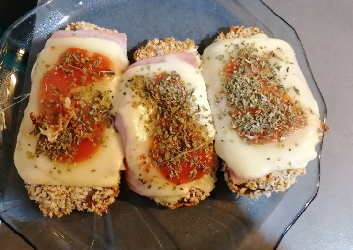 - Hornear 15' 20' vuelta y vuelta de ambos lados. Retirar del Horno agregar Salsa de Tomate, Jamón o Lomito, Muzzarella, Salsa de tomates y Orégano. Llevar nuevamente al Horno para gratinar. Servir.