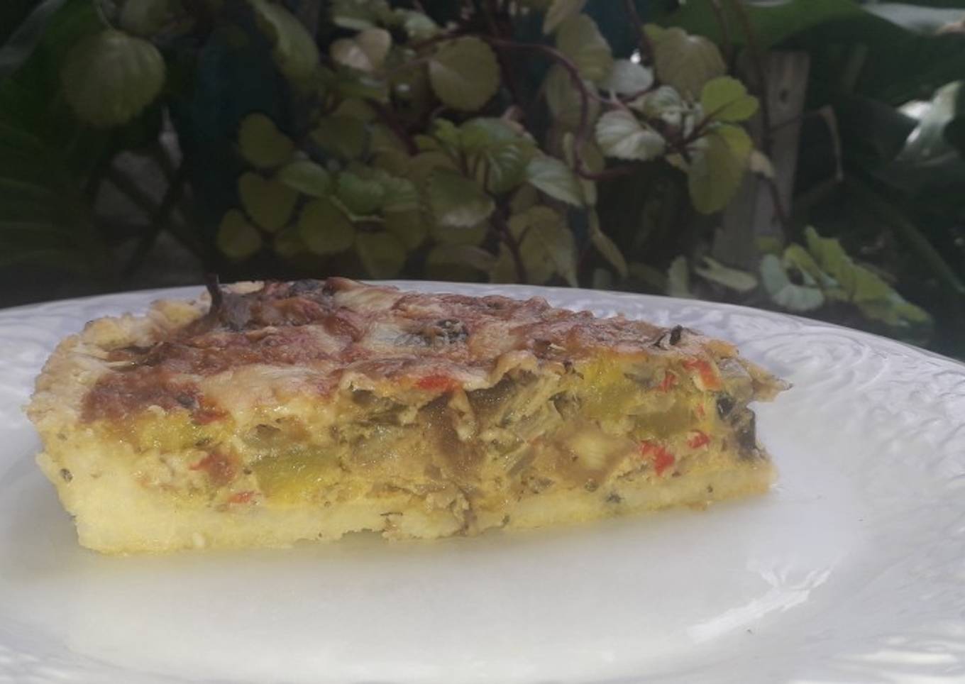 Instructions to make to make Tarta de zapallitos y berenjena con masa de arroz