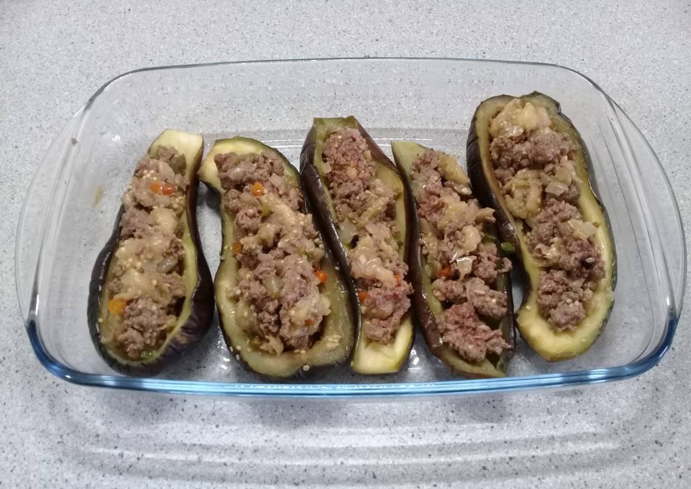 - Colocar el relleno dentro de las berenjenas, hornear durante 20 minutos y listo !