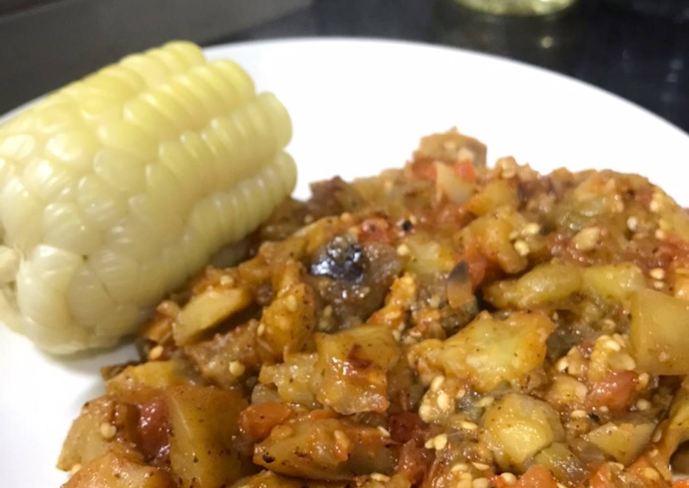 - Pinchar la berenjena con un tenedor y si entra fácil ya está, yo lo acompañé con medio choclo, almuerzo rápido y fácil 😉.