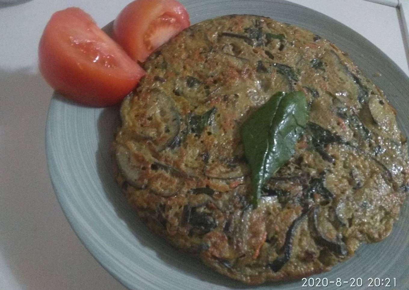 Tortilla de berenjenas, espinacas y cebolla