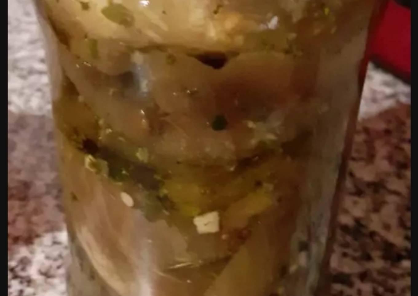 - Mientras preparamos dos frascos y condimentados con provenzal. Agregamos aceite y hojas de laurel y vamos colocando nuestras berenjenas. Yo le agregué apenitas un poquito de vinagre. Cierro los frascos y a esperar. A veces no llegan a mañana! Jaja!