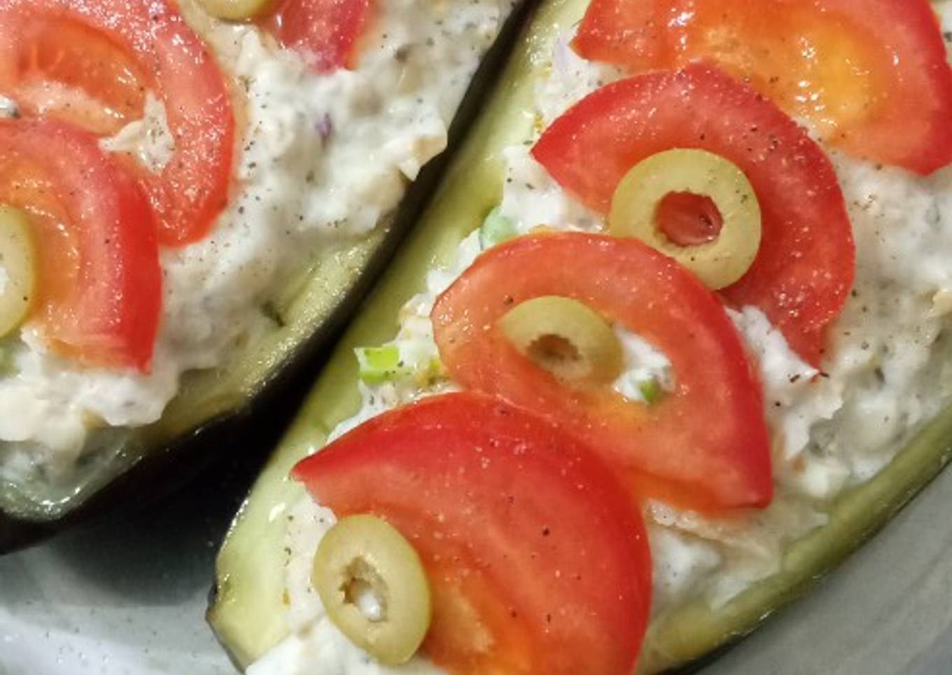 - Colocar rodajitas de tomate fresco y aceitunas cortadas.