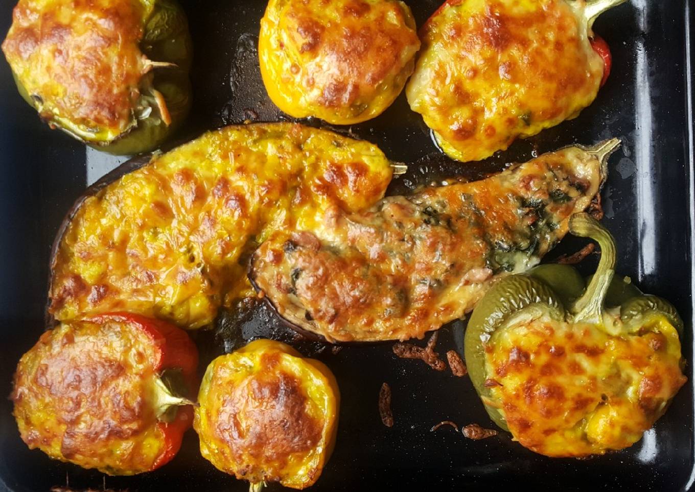 Berenjenas y pimientos rellenos