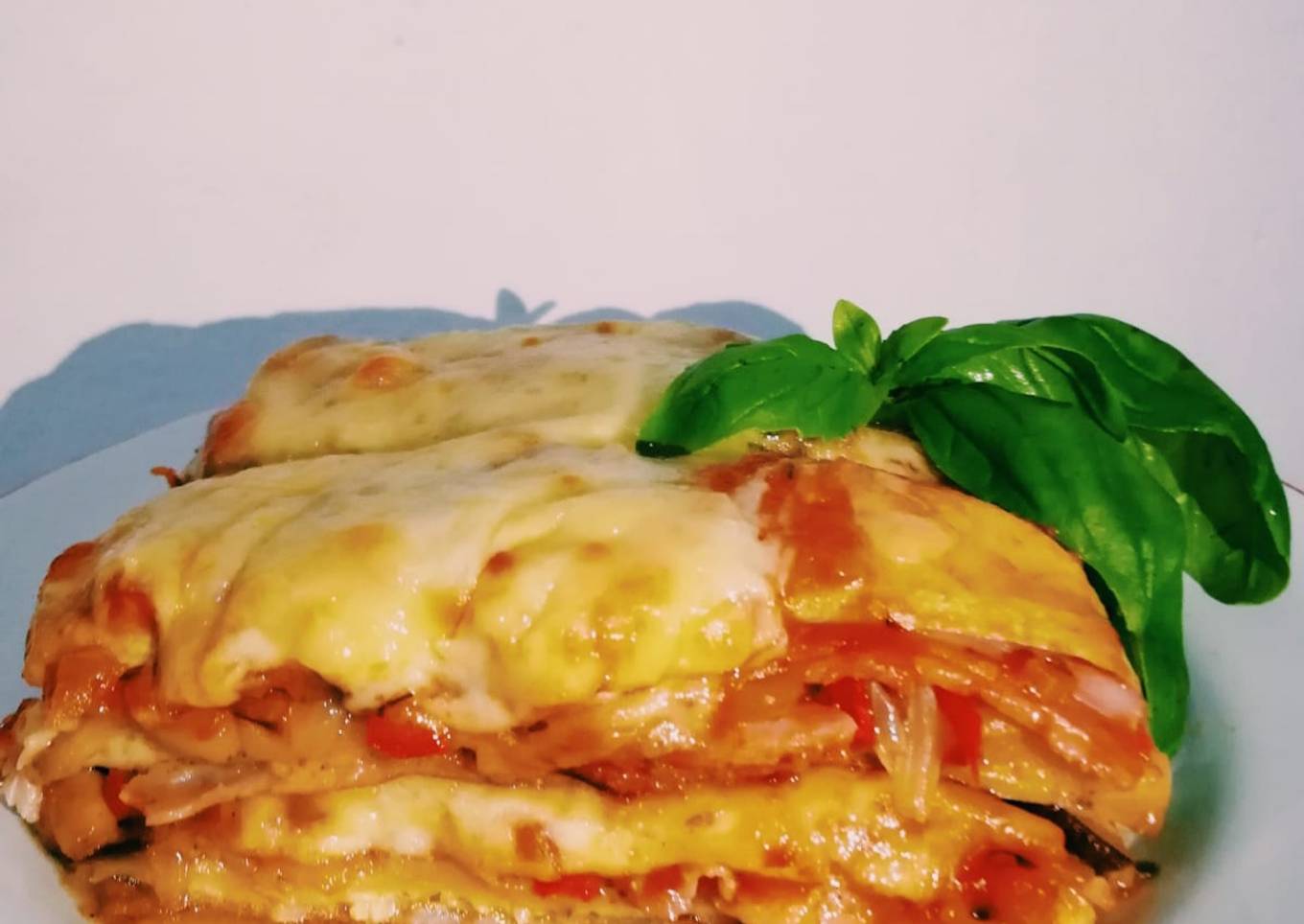 - Y por último antes de que se termine de cocinar la lasaña le puse la salsa y muzzarela. Y ya pronta para comer 🤗 la verdad quedó excisita y el sabor de la panceta ahumada le dio su toque. Espero les guste saluds 😋