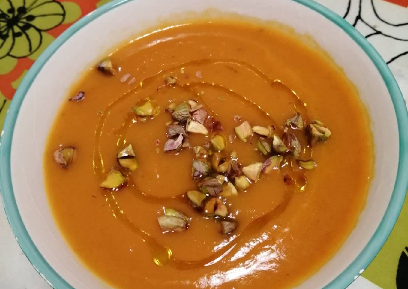 - Se puede servir con trocitos de pan frito o yo esta vez lo hice con pistachos y un chorrito de AOVE.